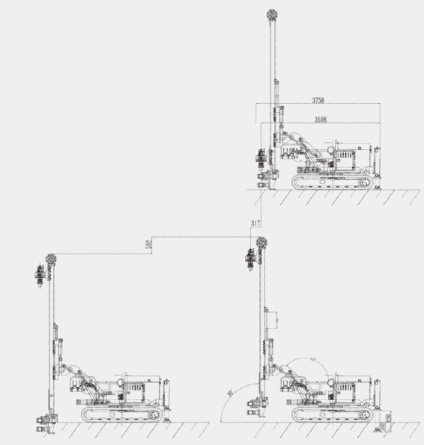 T系列鑽機臂架採用多角度靈活調節設計,作業範圍廣泛。