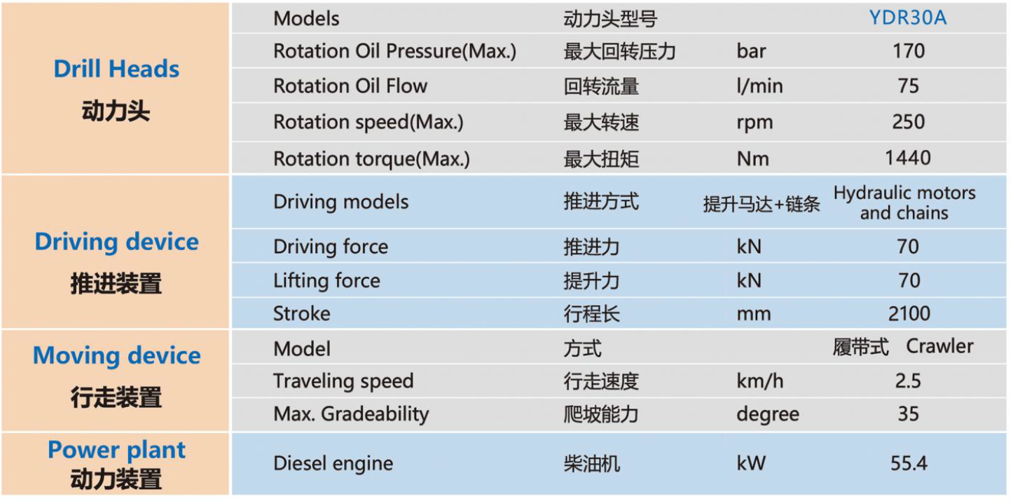 提供多種動力頭選配方案,以應多樣化的工況需求。