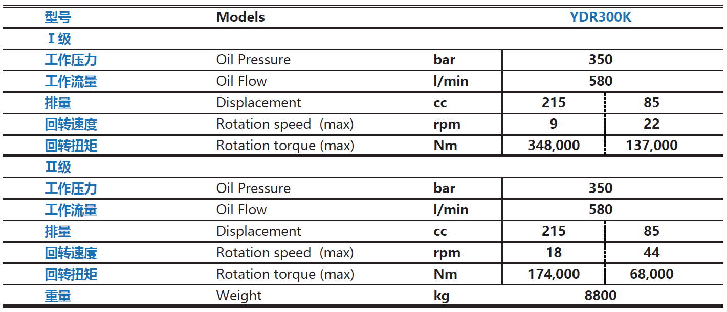 II級動力頭採用單馬達,最大扭矩174,000Nm;