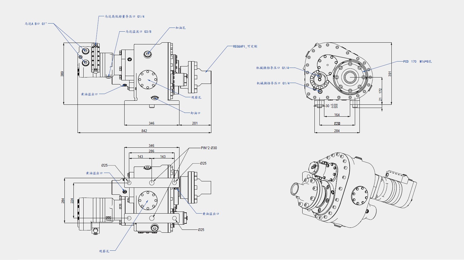 2檔液壓系統變速,可通過選擇液壓迴路實現2檔回轉速度。