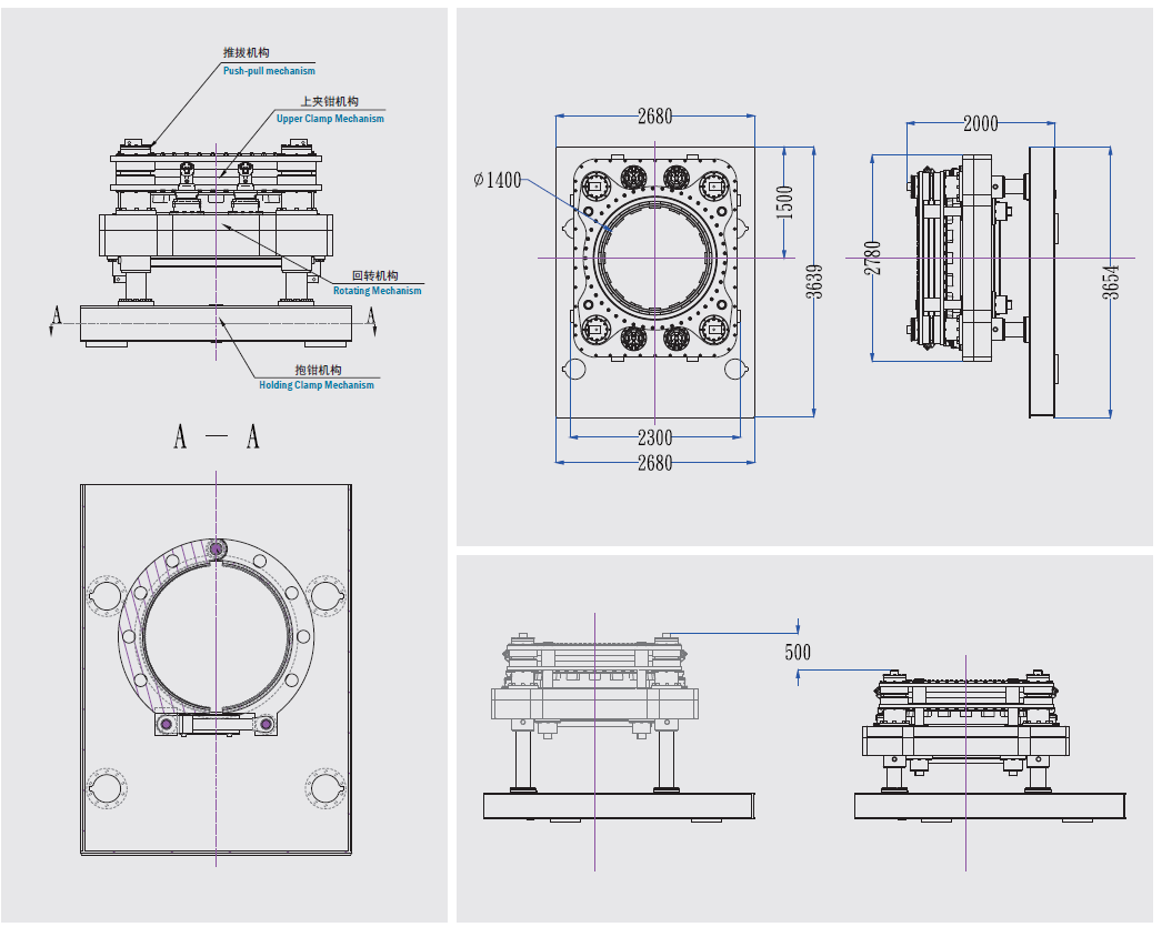 可夾持直徑127mm以下的圓鑽桿和三菱鑽桿。